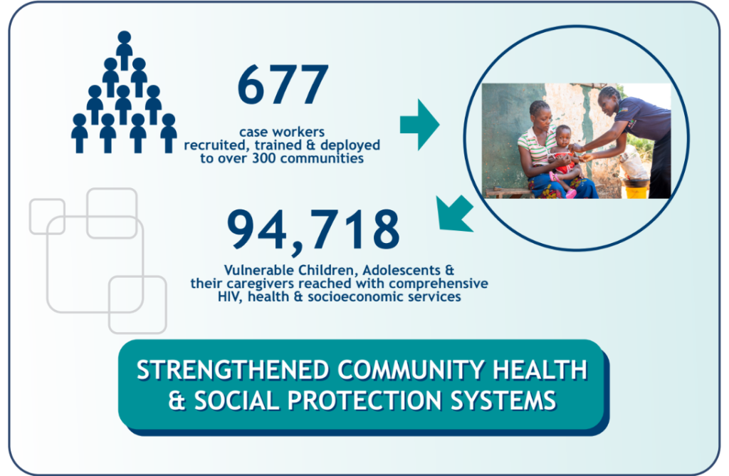 7,108 Children and Adolescents Living with HIV were reached with community-and home-based treatment adherence and care services as part of case management and 96% of them were virally suppressed the end of the fiscal year.