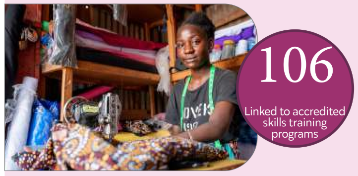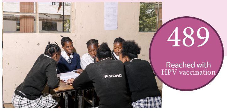 Supported school progression and retention for 636 high-performing Adolescent Girls and Young Women at elevated risk of HIV acquisition. Linked 106 out of school Young Women at elevated risk of HIV acquisition to accredited skills training programs and market-researched apprenticeship programs. Preventing cervical cancer in Adolescent Girls: 489 adolescent girls (9-14 years of age) were supported to access HPV vaccination to prevent cervical cancer. Zambia has the third highest cervical cancer incidence rate (65.5 per 100,000) globally.