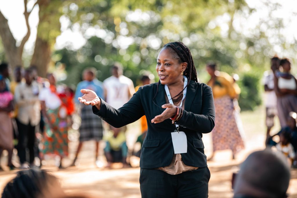Project Concern Zambia Chief Executive Officer (Yvonne Mulenga) engaging with Community Members